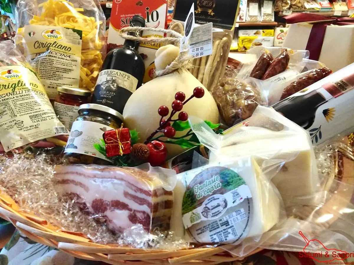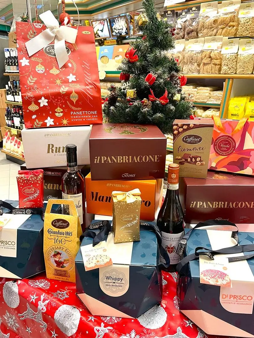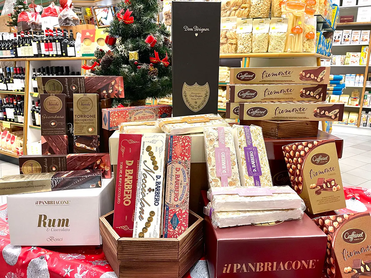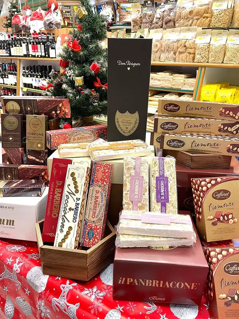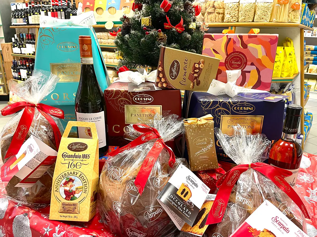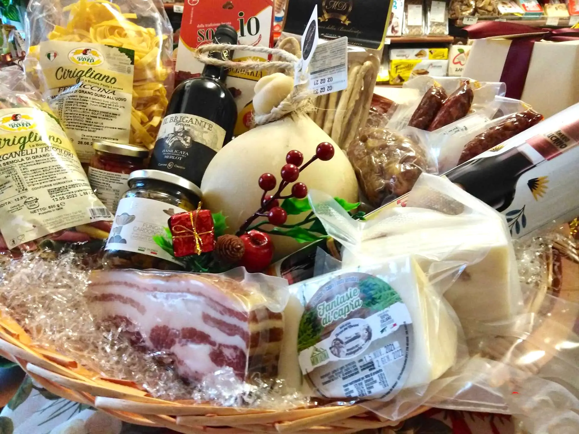 Nel periodo natalizio, alla Bottega La Sorgente dell’Alimentazione puoi creare — su ordinazione — cesti e confezioni regalo su misura, ricchi di specialità dolci e gastronomiche selezionate con cura del cliente.